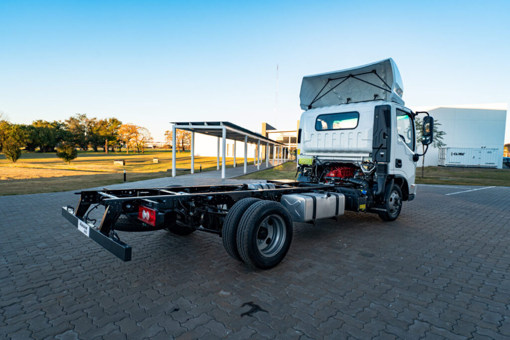 Esa versatilidad también se demuestra en sus capacidades: la tara de la versión chasis es de 2774 kg con un Peso Bruto Total (PBT) de 6000 kg.