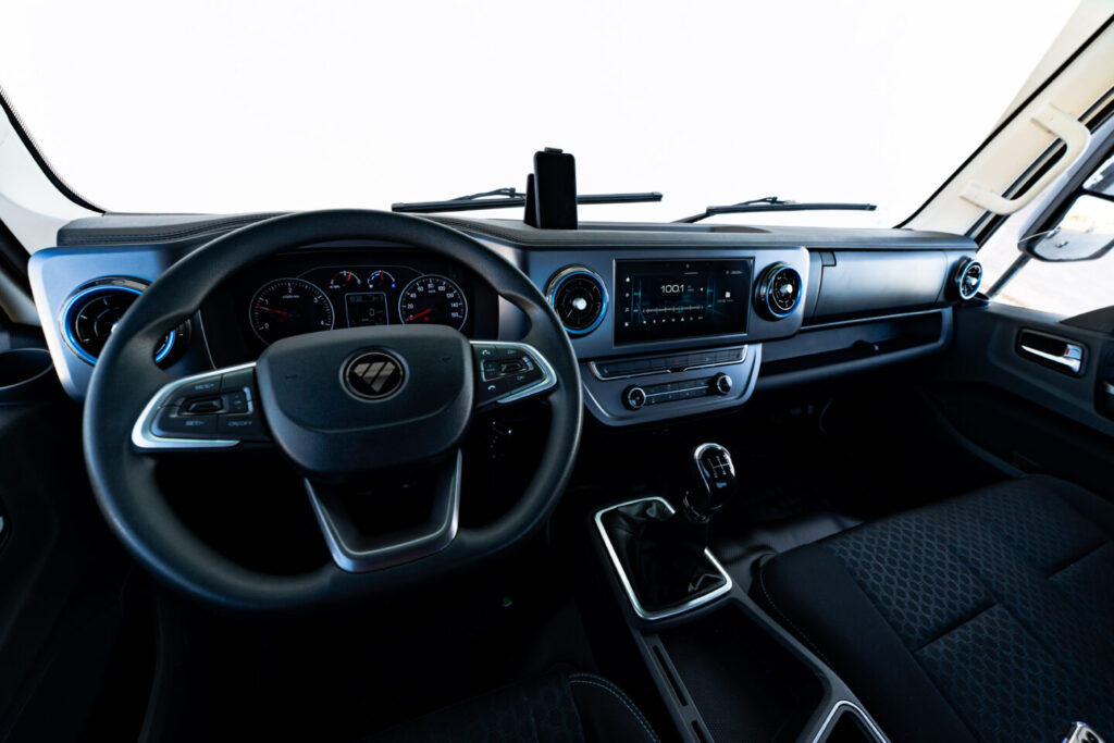 Pensando en la comodidad de los transportistas, el nuevo Aumark 615 ofrece una cabina amplia y confortable, diseñada con la última tecnología.