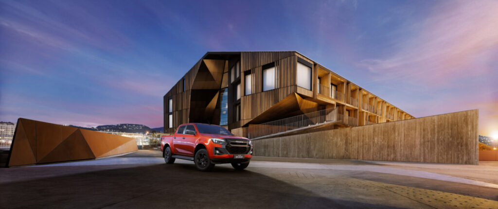 La nueva D-Max adopta el concepto estético “Miura Design”, inspirado en el modelo de origami desarrollado por el astrofísico japonés Kōryō Miura. Esta filosofía genera una estética esculpida donde elementos poligonales se fusionan con líneas curvas y tensas, creando un diseño que concentra deportividad y elegancia en cada superficie.